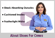 to be your best defense against slips and falls for over 25 years. The Sole that Changed the Industry Shoes For Crews® began producing slip-resistant footwear in 1984 and through superior technology quickly became the industry leader. Over the years we’ve stayed on top by working hard to deliver you an unbeatable product at a great price. Of course your safety and satisfaction is our ultimate goal and we look forward to delivering you the world's best slip-resistant footwear. Over 80 comfortable style choices with unbeatable prices Because we design and manufacture our own shoes, we're uniquely able to pass savings along directly to you. Many styles start under $30! With more than 80 styles to choose from and a variety of accessories to enhance the comfort and fit of your shoes, Shoes For Crews is your one stop shop for all of your slip-resistant footwear needs. Free Exchanges and E-Z Returns! See what makes us the #1 slip-resistant shoe in the world. No other shoe offers our patented SFC Mighty Grip technology combined with extraordinary comfort, durability and style - all at an affordable price. Take our Wear & Compare Challenge, and if for any reason you are not 100% satisfied within 60 days of purchase, we offer FREE exchanges or E-Z returns.* No questions asked. We out-grip the competition Our unique footwear outsole is what makes SHOES FOR CREWS® decidedly better than the competition. Our outsole features an exclusive rubber compound and a grid pattern that actually pushes liquids away and aggressively grips the microscopic roughness of the floor surface. For over 25 years we've designed and manufactured shoes that keep you safe in the most slippery conditions. Independent lab tests prove that the SFC Mighty Grip outsole outperforms competing brands by OVER 200%! Our mission It is the mission of Shoes For Crews, LLC (SFC) to become partners in safety with our clients and exceed their expectations by reducing slip and fall incidents and improving the personal safety of the end-user. SFC strives to create a safer workplace in all industries where floor hazards are a reality. The SFC team's focus is to deliver the ultimate in slip-resistant technology as well as classic and fashion styling, through a complete line of footwear designed to improve the "quality of life" of the working person by combining slip-resistance, comfort and durability into all our products. SHOES FOR CREWS® is the global leader in slip-resistant footwear. With distribution centers in the United States, Canada and Ireland, we protect over 100,000 workplaces worldwide. The most popular brand of slip-resistant footwear You’ll find our footwear in the finest restaurants, the greasiest kitchens, hospitals and medical facilities, and in industrial and manufacturing operations with slippery floor hazards. Wherever you work, SHOES FOR CREWS® can make your job easier and safer as you walk with confidence and comfort. Stay safe on your feet with SHOES FOR CREWS®. click here for more details |